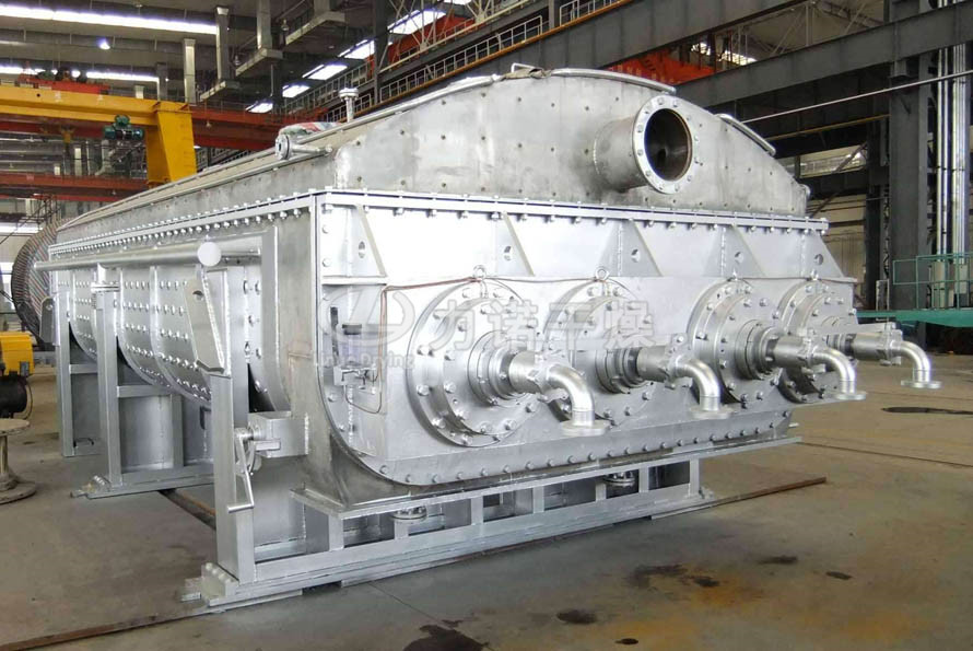 桨叶干燥机能耗低: 由于间接加热,没有大量携带空气带走热量,干燥器外壁又设置保温层,对浆状物料,蒸发1kg水仅需1.2kg水蒸汽。